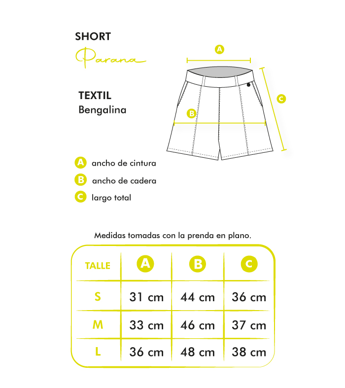 Medidas tomadas con la prenda en plano. Pueden variar ±1 cm según partida.