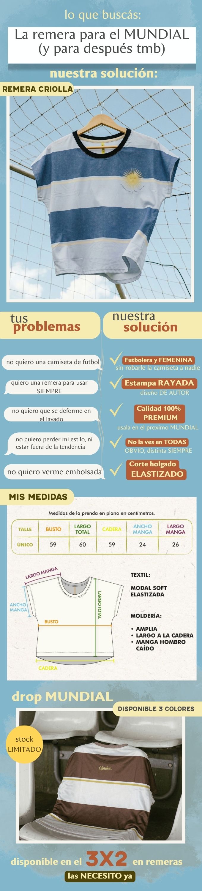 Las estampas, colores y telas que ves son los que recibís. Nuestro universo de colores y estampas a veces es un desafío de capturar en cámara, pero hacemos nuestro mayor esfuerzo por ser fieles a la realidad. ¿Tenés dudas? Escribinos por WhatsApp y te mandamos más fotos o un video.
